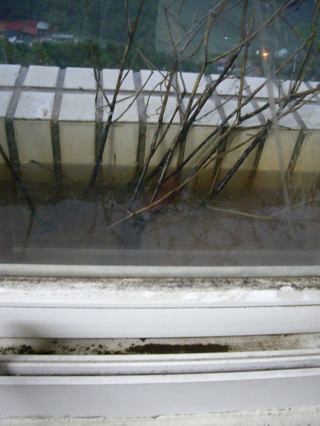 我剛才想趁雨沒那麼大的時候 把窗戶打開 用杯子甚麼隨便的容器把水舀掉