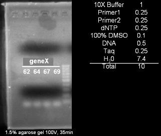 結果只有前面大約55~58左右有PCR產物出現