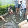 我爺爺只願意泡腳,所以我就陪他一起在附近公園泡腳。